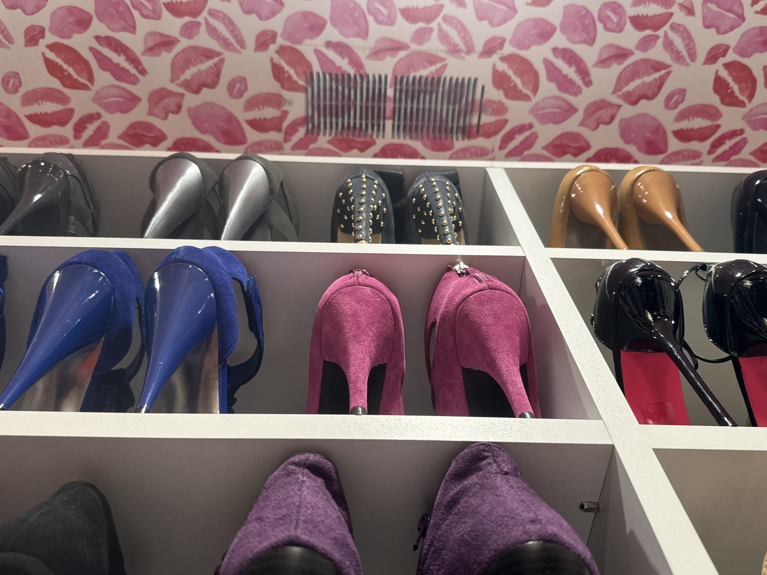 Wallpaper on the ceiling and walls adds a burst of character. It makes each closet feel cozy and stylish. By including wallpaper behind the doors, it ensures that no space is left plain. It’s these little touches that turn a closet from ordinary to extraordinary.