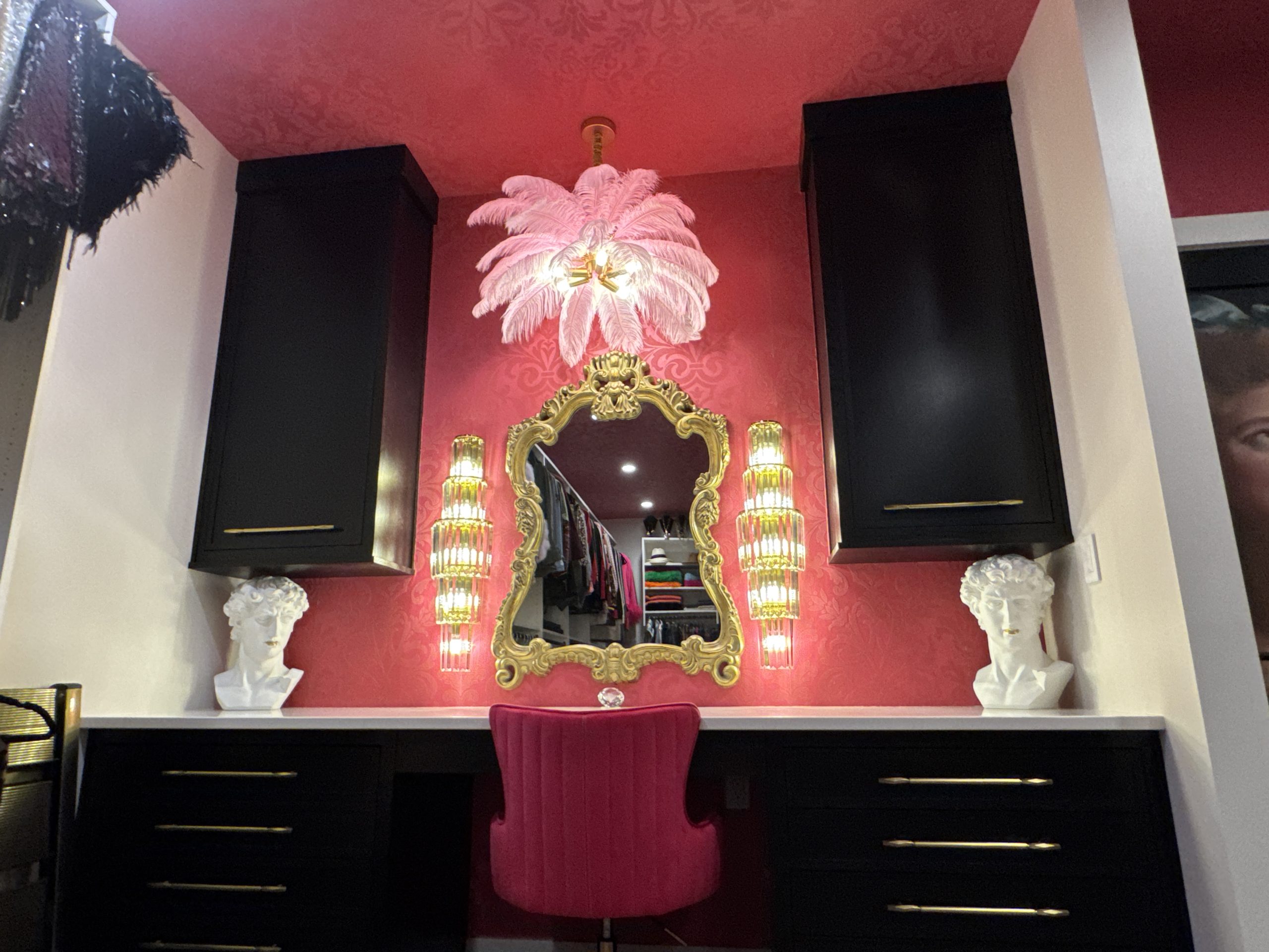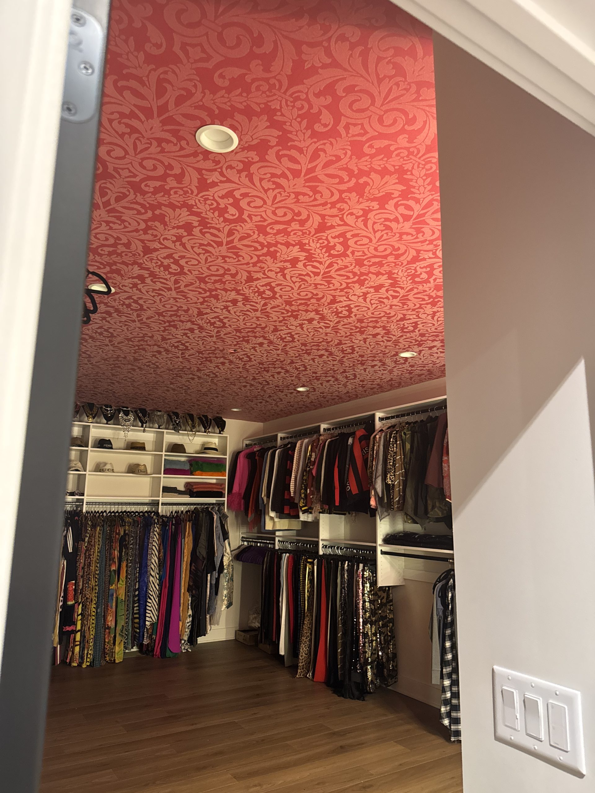 Imagine walking into a closet that feels like a luxurious escape! That’s exactly what Serendipity Designs LLC created in Danville. Our team transformed two walk-in closets into high-end spaces by installing wallpaper on the ceiling, walls, and behind doors. Every detail was carefully planned to make these closets feel special and unique.
