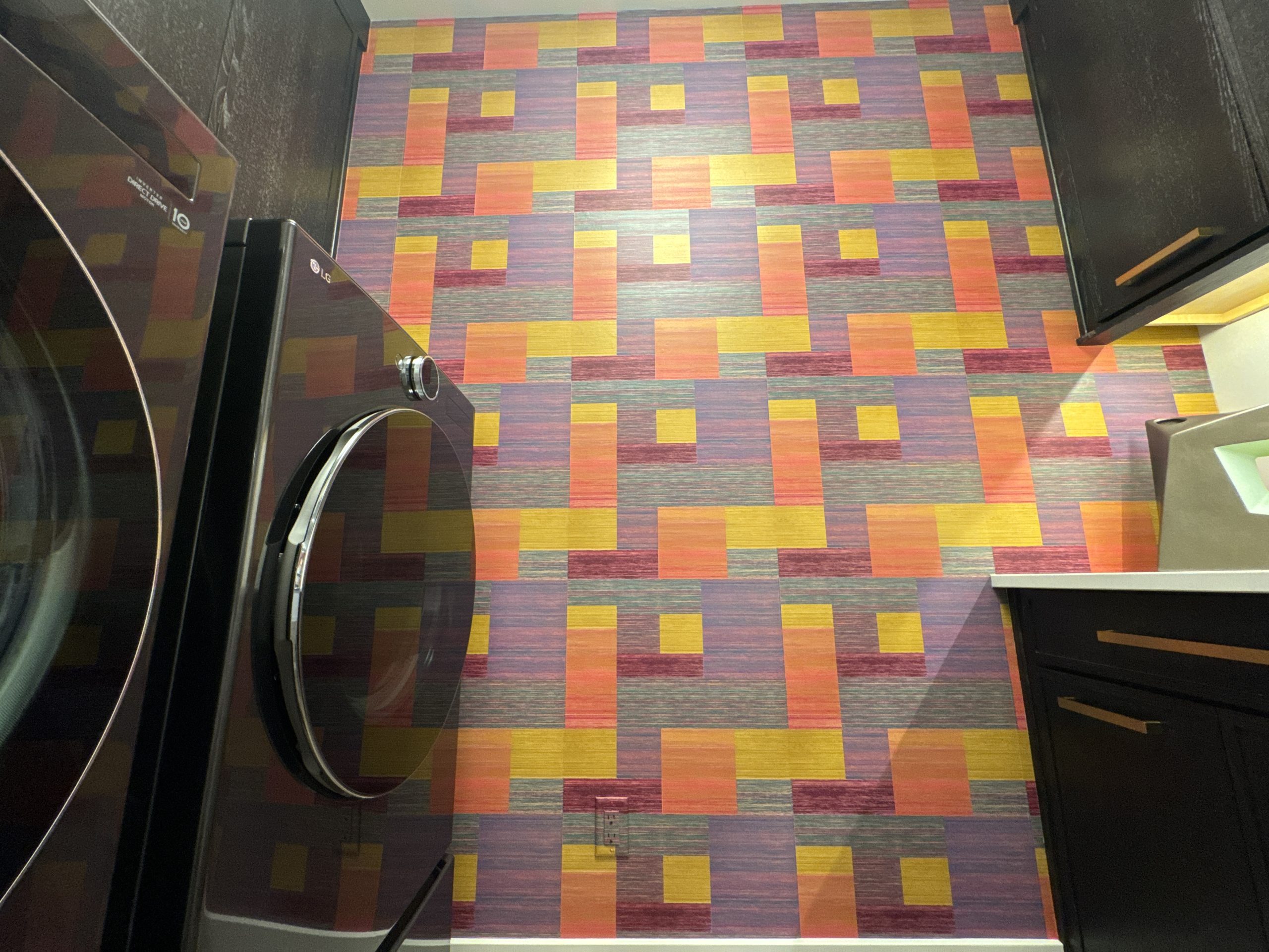 The geometric patterns on this wallpaper make the laundry room not only chic but also energizing, making laundry day less of a chore. The colors and artistic designs bring a sense of fun into a space that usually feels boring. Imagine stepping into your laundry room and being greeted by a piece of art every day!